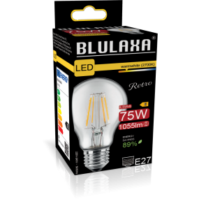 Die helle 8,5 Watt starke LED Filament Lampe Birnenform aus dem Hause BLULAXA® erstrahlt im warmweißen Licht und besticht vor allem durch die exzellenten technischen Daten. Eine lange Lebensdauer und hohe Schaltfestigkeit sind nur einige der Vorteile, die die LED-betriebene Lampe mit sich bringt.