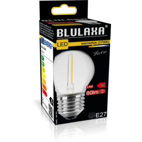 Diese LED Filament Lampe MiniGlobe aus dem Hause BLULAXA® ist ausgestattet mit 1,4 Watt. Wie bei herkömmlichen Varianten, ist auch die LED Filament Lampe MiniGlobe 1,4 Watt mit einem handelsüblichen E27 Sockel versehen, der einen einfachen 1 zu 1 Austausch ermöglicht. Das warmweiße Licht, das von dem Filament Glühfäden ausgeht, verteilt sich gleichmäßig über die Oberfläche der gläsernen Abdeckung und sorgt für eine homogene Ausleuchtung.
