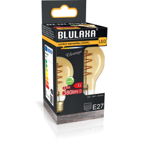 Die dimmbare LED Filament Vintage Lampe ist ausgestattet mit 4,8 Watt und besticht durch die goldene Retro-Optik. Die Vintage-Optik setzt sich zusammen aus der goldgläsernen Abdeckung und den gedrehten LED-Fäden, die dafür sorgen, dass das Leuchtmittel im superwarmweißen Licht erstrahlt. Zu den technischen Vorteilen gehört vor allem die lange Lebensdauer.