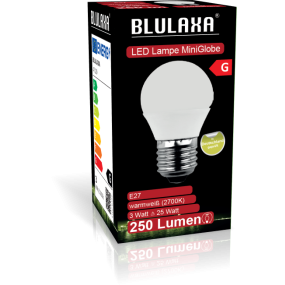 Diese Variante der LED MiniGlobe 3 Watt ist ausgestattet mit handelsüblicher E27 Fassung und erstrahlt im warmweißen Licht. Die opale Kunststoffabdeckung sorgt für eine gleichmäßig blendfreie und Lichtstreuung und ermöglicht zusätzlich eine großflächige Beleuchtung. Problemlos ersetzt sie herkömmliche 25 Watt Lampen und übersteigt diese bezüglich der Lebensdauer.