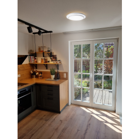 Die Lichtverteilung mit der warmweißen Lichtfarbe ist gleichmäßig und ohne störende Schattenbildung.