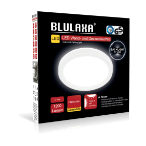 Die flache „Ultraslim“ LED-Wand- und Deckenleuchte Plano slim der Marke BLULAXA® besticht durch ein zeitloses und modernes Design mit weißem Ring und flacher Bauform von nur 2,8cm. Der Backlight Effekt unterstreicht die schwebende Optik und wirkt dabei modern und fügt sich ideal in Ihren Raum ein. Die Lichtverteilung mit der warmweißen Lichtfarbe ist gleichmäßig und ohne störende Schattenbildung. Auch die Montage gestaltet sich einfach und unkompliziert Dank der Schnellklemme mit Drehverschluss. Der Durchmesser der Leuchte beträgt ca. 19cm.