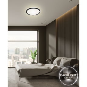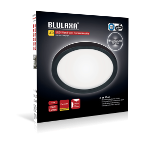 Die flache „Ultraslim“ LED-Wand- und Deckenleuchte Plano slim der Marke BLULAXA® besticht durch ein zeitloses und modernes Design mit schwarzem Ring und flacher Bauform von nur 2,8cm. Der Backlight Effekt unterstreicht die schwebende Optik und wirkt dabei modern und fügt sich ideal in Ihren Raum ein. Die Lichtverteilung mit der warmweißen Lichtfarbe ist gleichmäßig und ohne störende Schattenbildung. Auch die Montage gestaltet sich einfach und unkompliziert Dank der Schnellklemme mit Drehverschluss. Der Durchmesser der Leuchte beträgt ca. 29cm.